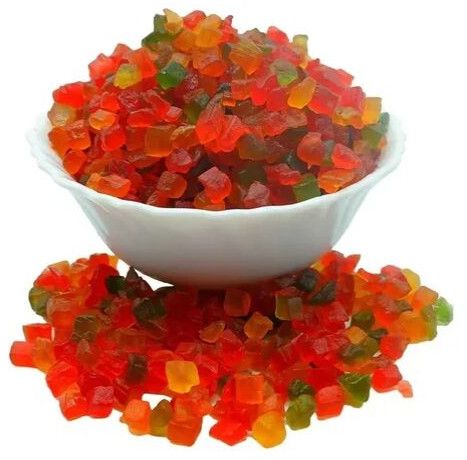 Papaya Tutti Frutti is crafted from fresh, ripe papaya fruit, carefully selected for its vibrant flavor and nutritional benefits. The process begins with peeling and dicing the fruit into small, uniform pieces, followed by a meticulous sweetening process using natural sugars to enhance its natural taste. These pieces are then dehydrated with precision to create colorful, chewy fruit cubes that retain a delightful fruity aroma and mild sweetness. This transformation not only preserves the fruit but also extends its shelf life, making it a versatile and long-lasting ingredient. Widely cherished in the bakery and confectionery industries, Papaya Tutti Frutti is a popular choice for adding a tropical flair to cakes, breads, cookies, and desserts, offering both aesthetic appeal and a burst of flavor.